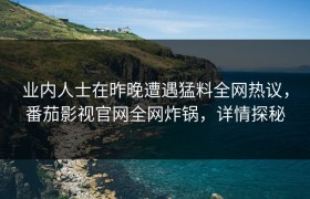 业内人士在昨晚遭遇猛料全网热议,番茄影视官网全网炸锅,详情探秘