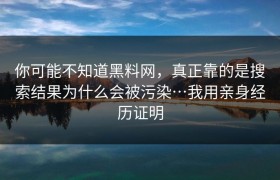 你可能不知道黑料网,真正靠的是搜索结果为什么会被污染…我用亲身经历证明 直到亲身遇上被“黑料”困扰之...